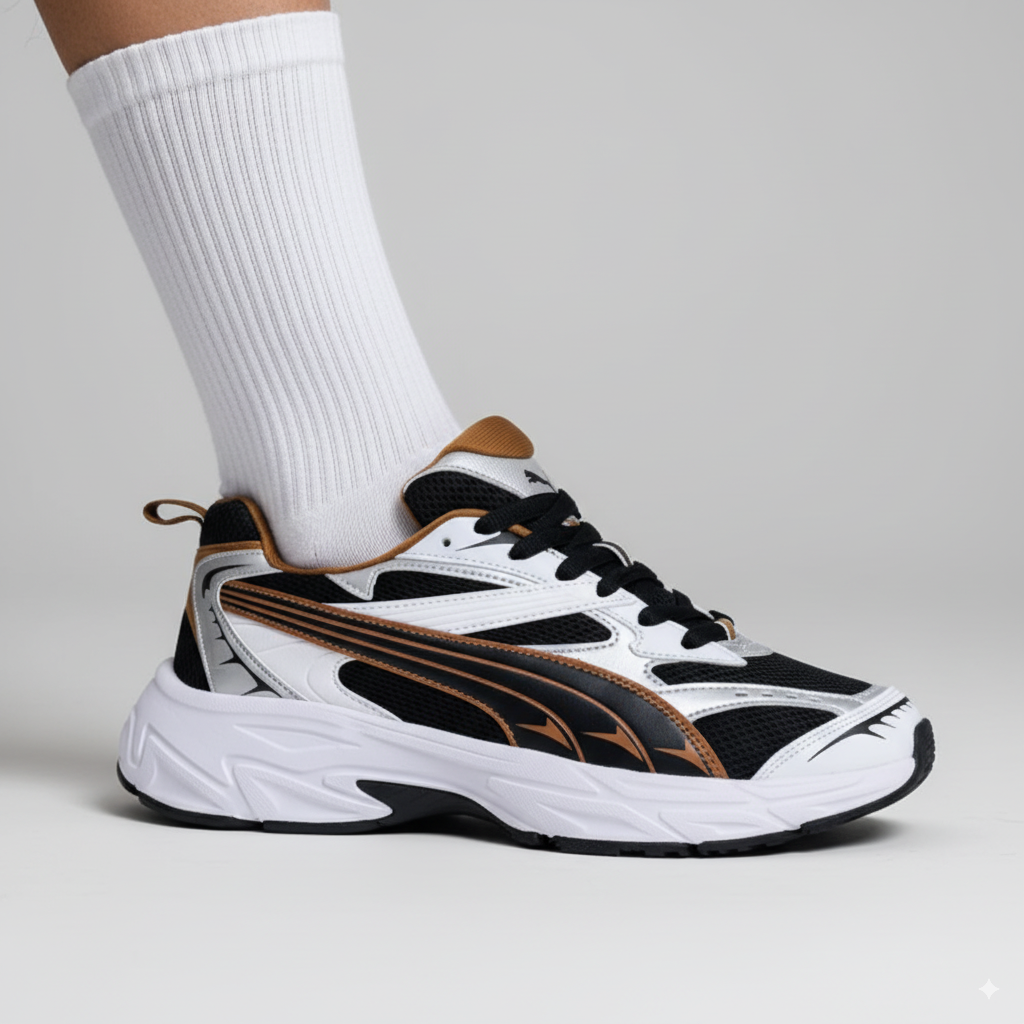 Descubre Puma Morphic Metallic, una zapatilla para correr que fusiona lo retro con lo futurista. Su base de malla bicolor y estampados brillantes crean un diseño audaz y vibrante, ideal para quienes marcan la pauta con estilo dinámico en cada paso. Eleva tu look y corre con actitud.